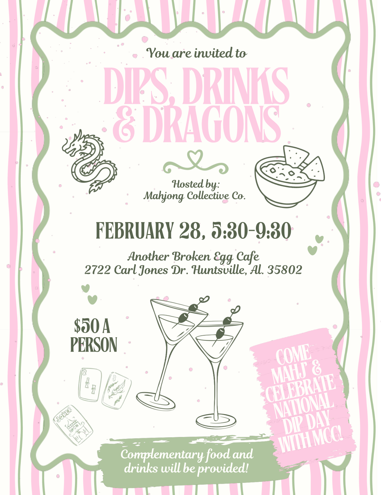 Join us for our Dips, Drinks, and Dragons Mahjong Party…